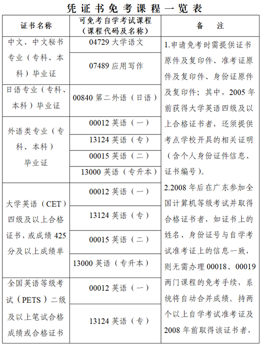 | 廣東省高等教育自學考試免考課程規定 |