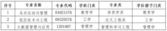 根據《教育部高等教育司關于開展2025年度普通高等學校本科專業設置工作的通知》(教高司函〔2025〕 3 號)、《河北省教育廳關于2025年度普通高等學校本科專業申報工作的通知》文件精神,學校組織開展了2025年新增本科專業申報工作。經相關教學單位申請、專家組論證,學校研究,我校2025年度擬申請增設馬術運動與管理、低空技術與工程、大數據管理與應用3個本科專業。